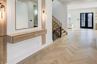 Our specialists installed hardwood flooring during the initial construction of this South Jersey mega mansion. The well known property has been described as being "fit for royalty.” We meticulously installed exquisite hardwood flooring throughout the expansive estate, ensuring the intricate patterns and inlays were installed with precision and care to enhance the mansion's luxurious aesthetic. Additionally, we installed custom wood stairs and railings that blend seamlessly with the overall design. Please take a look to see what we can do in your home.